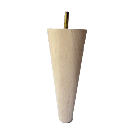 The LT6258 Turned Tapered Furniture Legs come Unfinished and are 6" tall, 2.4" at the top and 0.9" at the bottom.