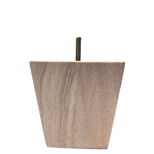 The LQ3057 Square Furniture Legs come unfinished and are 3" tall, 5.75" at the top and 4.25" at the bottom.